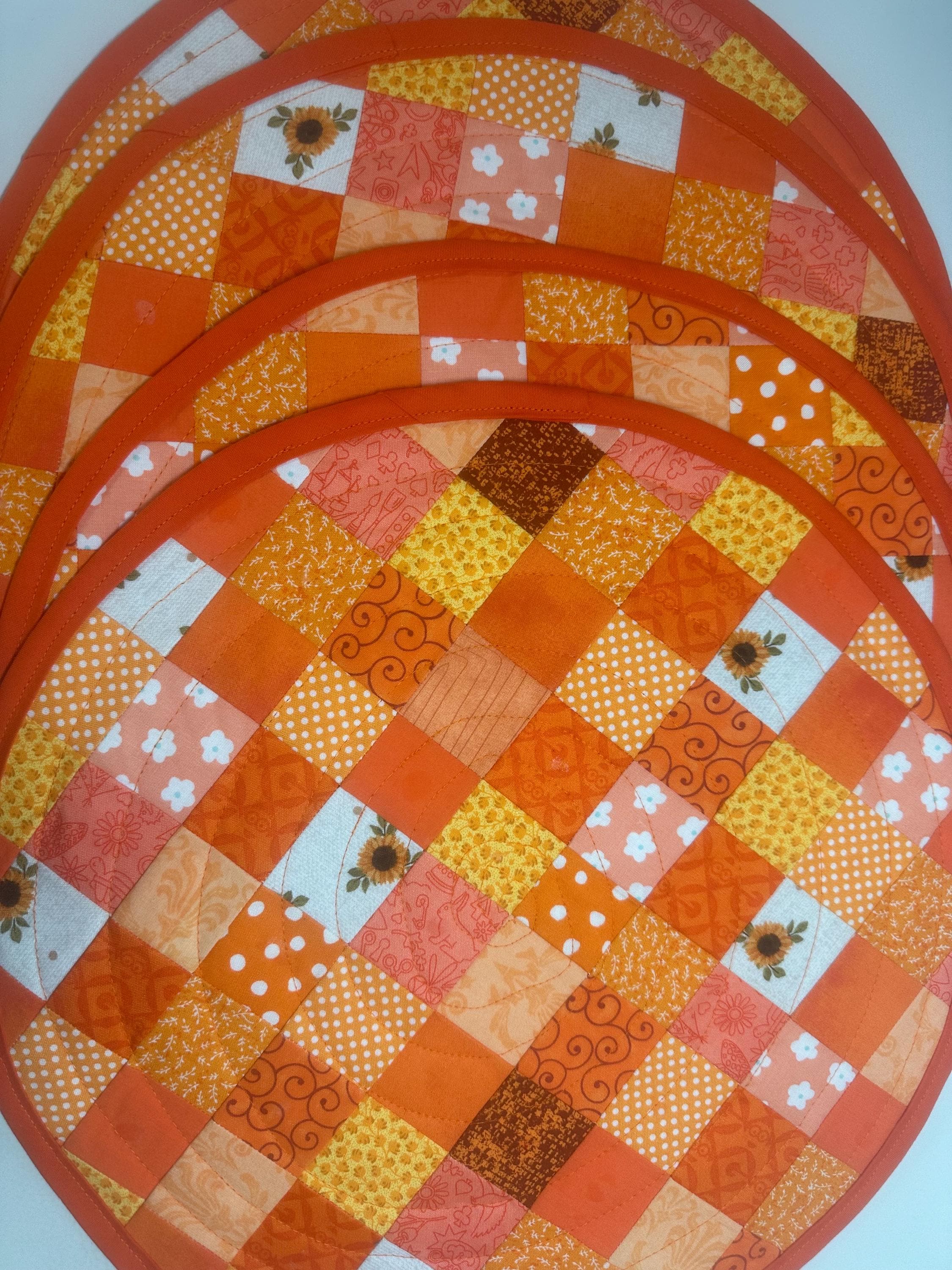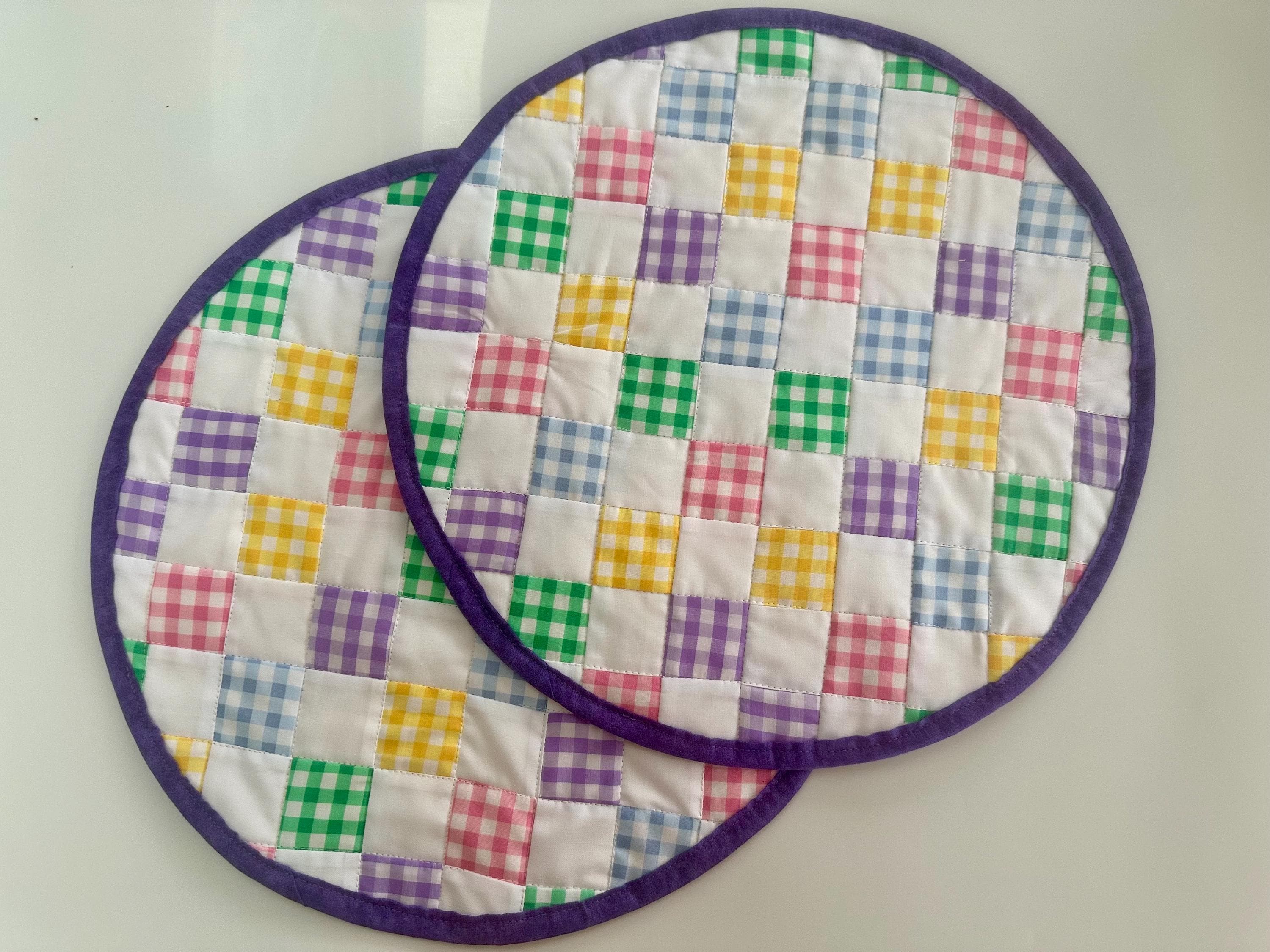 Each placemat is made from 100% cotton fabric, backed with coordinating fabric, quilted with 100% cotton batting.