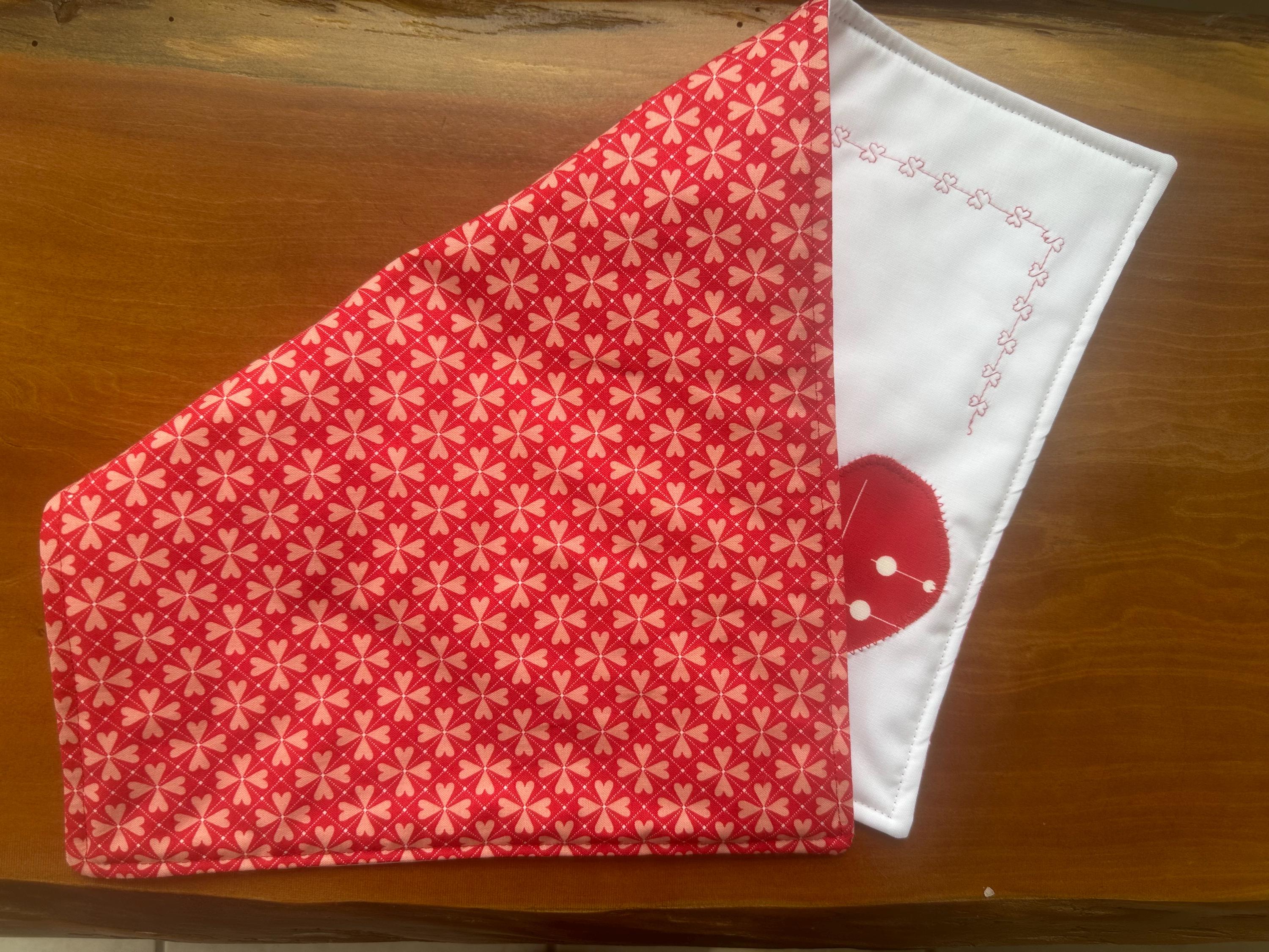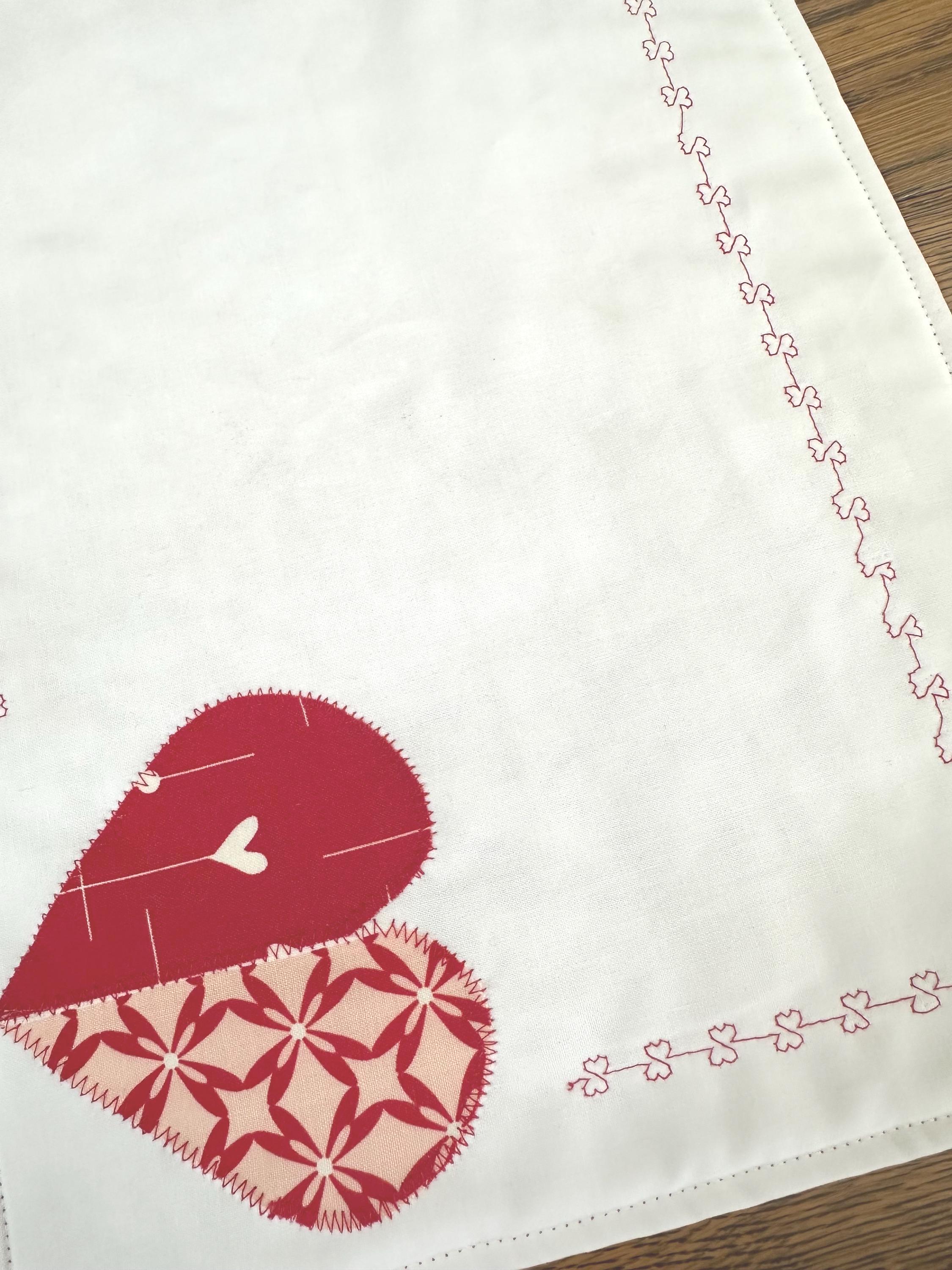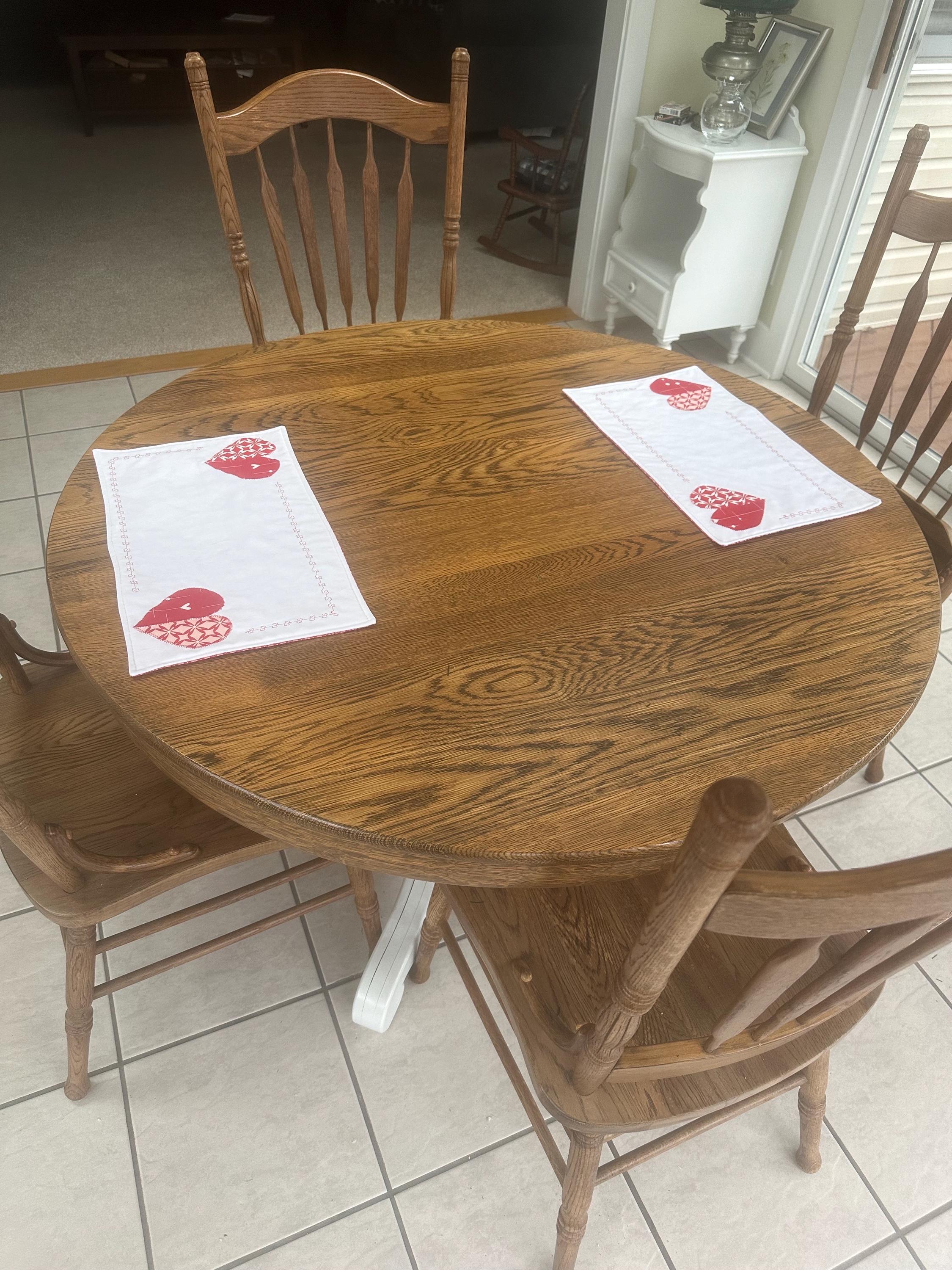 Set a holiday table with these heart placemats. Two hearts on adjacent corners with design hearts outlining the placemat. This set of 2 placemats will help create a romantic table scape.