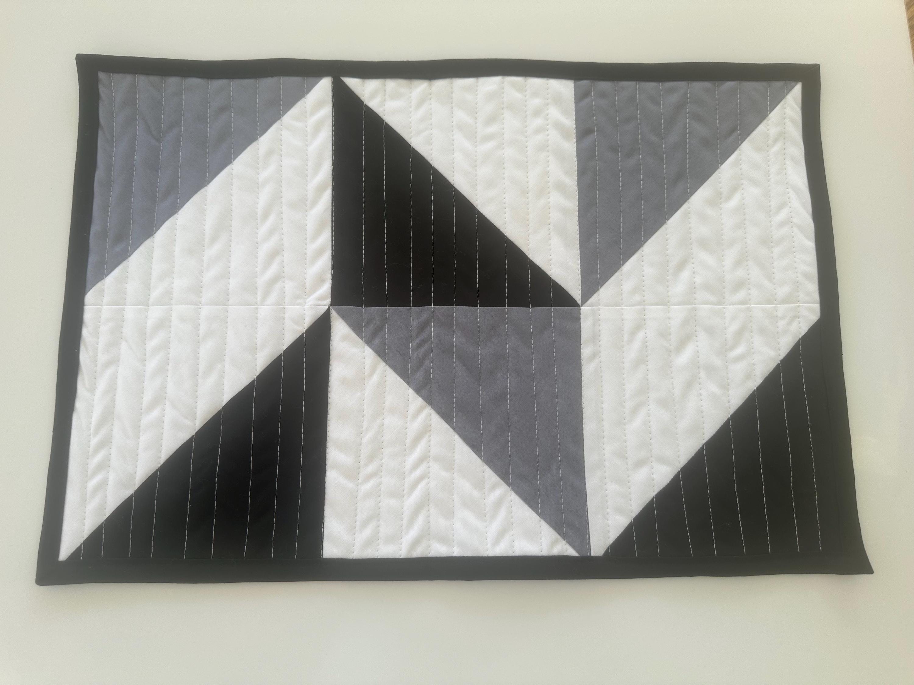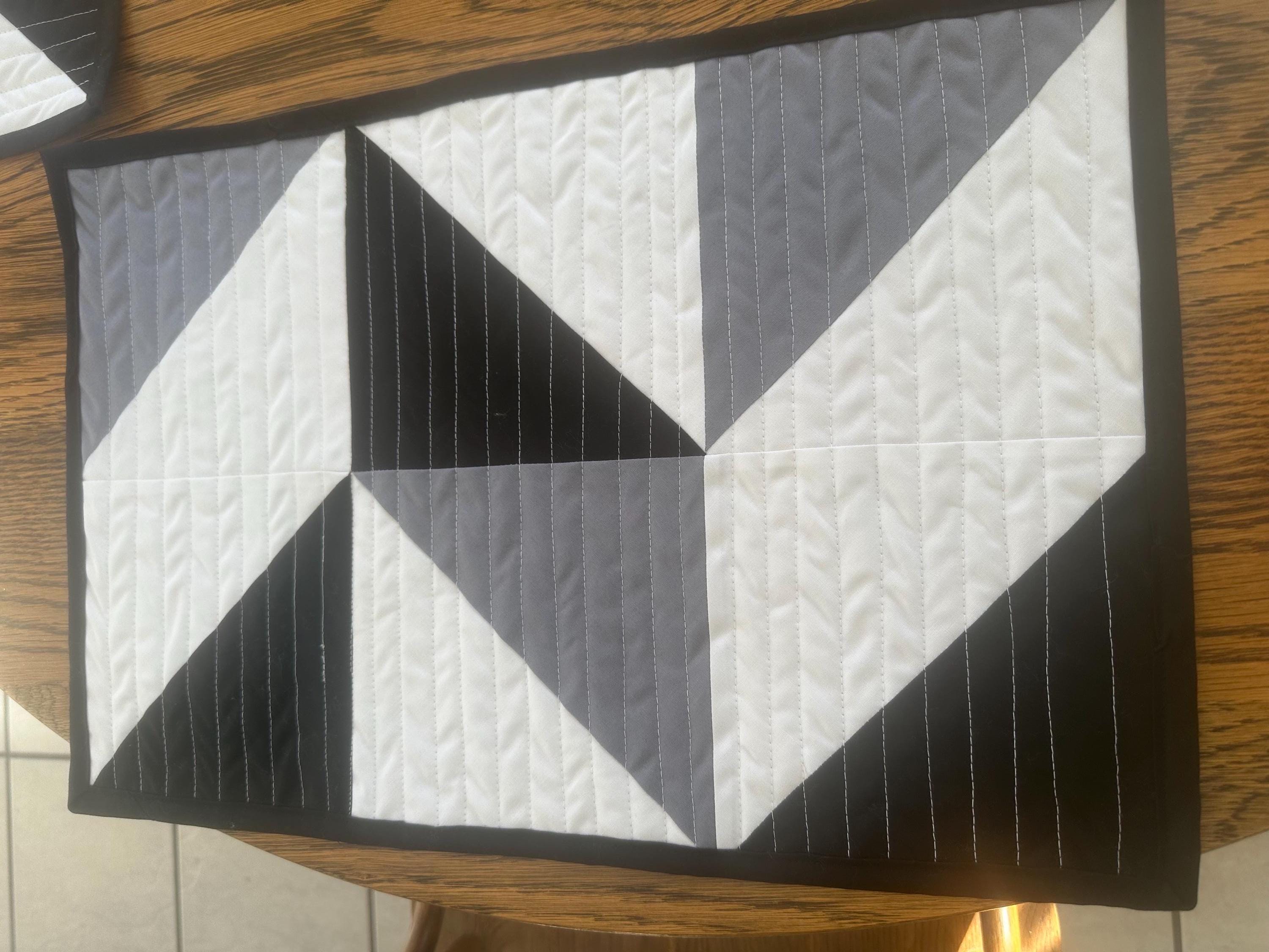 Be sure to check out the matching table runner. https://sewsewcuteandmore.etsy.com/listing/4297757966/black-white-and-grey-modern-color-block